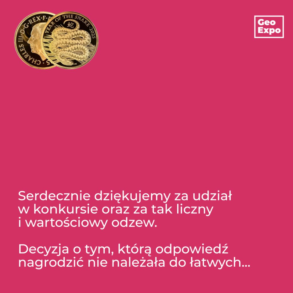 Zdjęcia nagrody (monety) przedstawione w materiałach konkursowych są własnością organizatora konkursu. Nagroda – moneta „Lunar Year of the Snake – The Royal Mint 1 oz Proof” – została zakupiona przez organizatora we własnym zakresie. Organizator nie pozostaje w związku partnerskim ani sponsorskim z The Royal Mint ani Mennica Apart. Wizerunek monety został wykorzystany wyłącznie w celu prawidłowego poinformowania uczestników o nagrodzie. Informacje o nagrodzie pochodzą ze strony internetowej Mennica Apart.