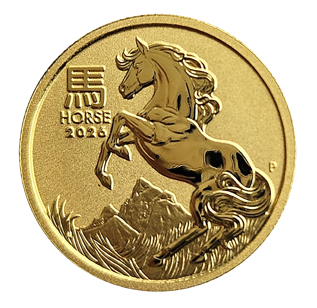 napis „HORSE 2026” oraz znak mennicy Perth Mint „P”.